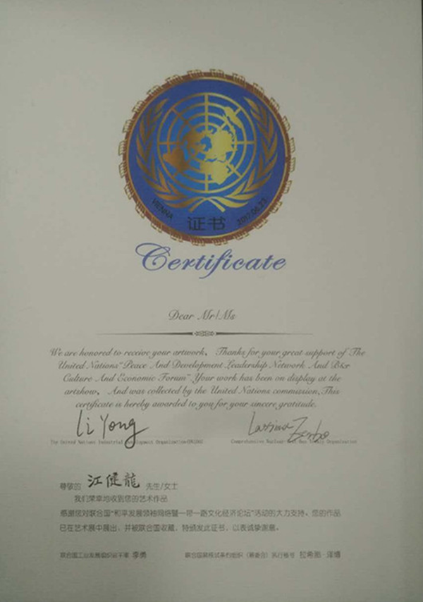 近日,聯合國“和平發展領袖網絡暨‘一帶一路’文化經濟論壇”在維也納聯合國國際會議中心舉行,此次論壇藝術展中,安徽新華學院動漫學院教師江健龍的作品入選并被聯合國收藏。